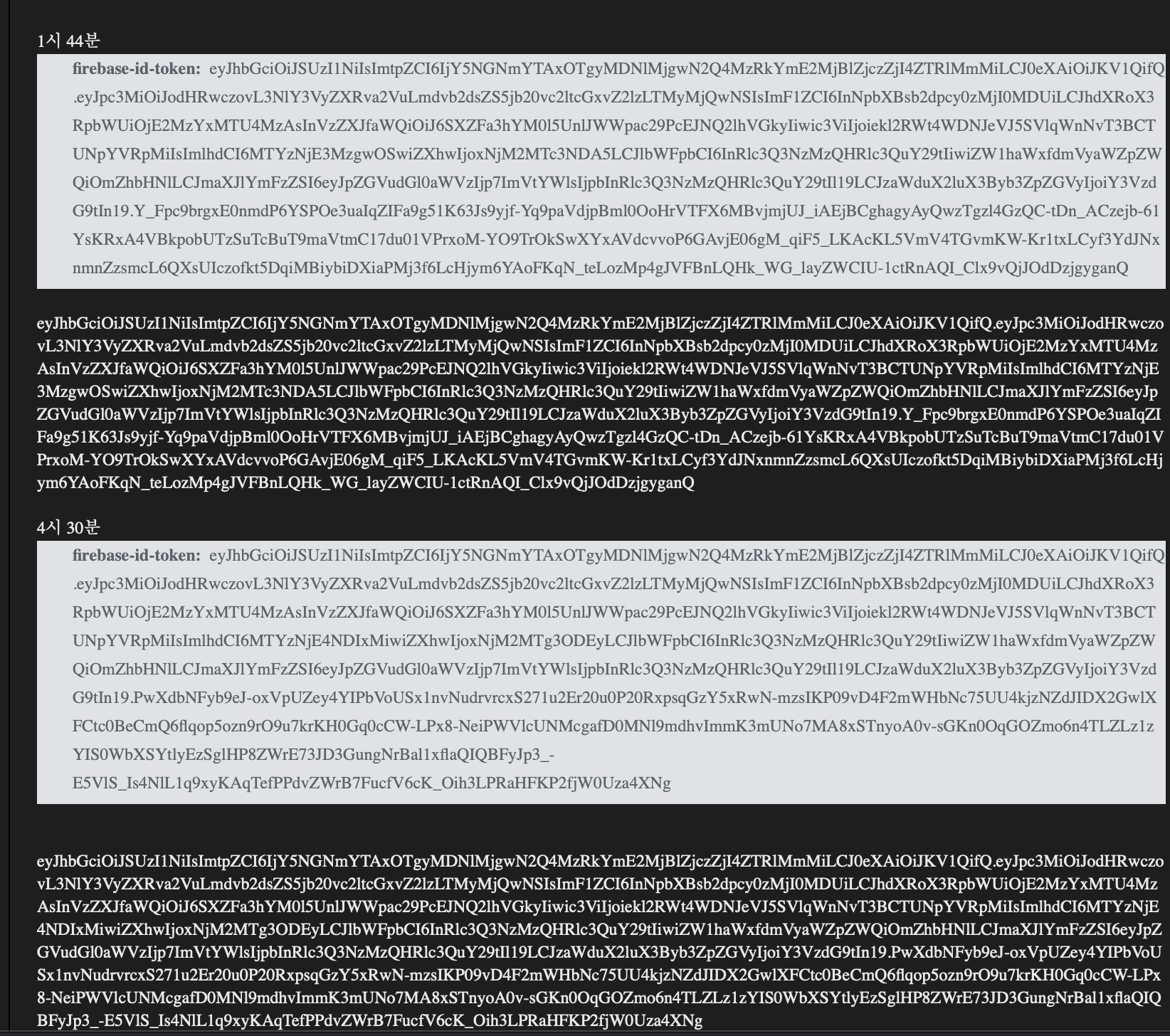 이게 문제가 위에서도 언급했지만 fireabse token은 1시간이 만료이다 ㅠㅠ