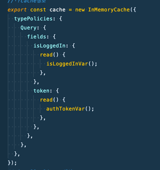 마지막으로 cache에 typePolicy를 설정해서 지속적으로 variable을 읽도록 해주는 로직이다.