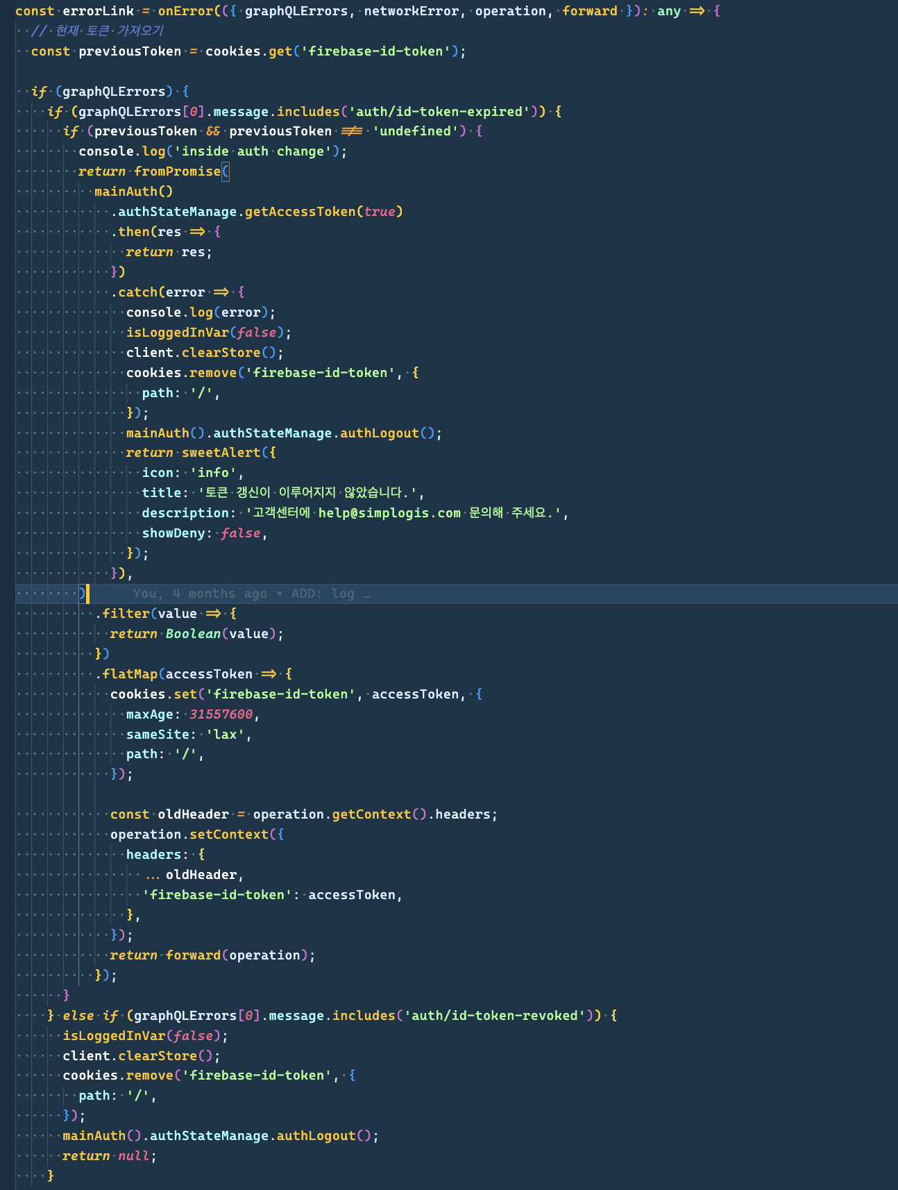 자 그럼 뭐가 있을까.. 검색을 하던중! graphql에러를 가지고 인증을 다시 해주는 방식을 보았다.