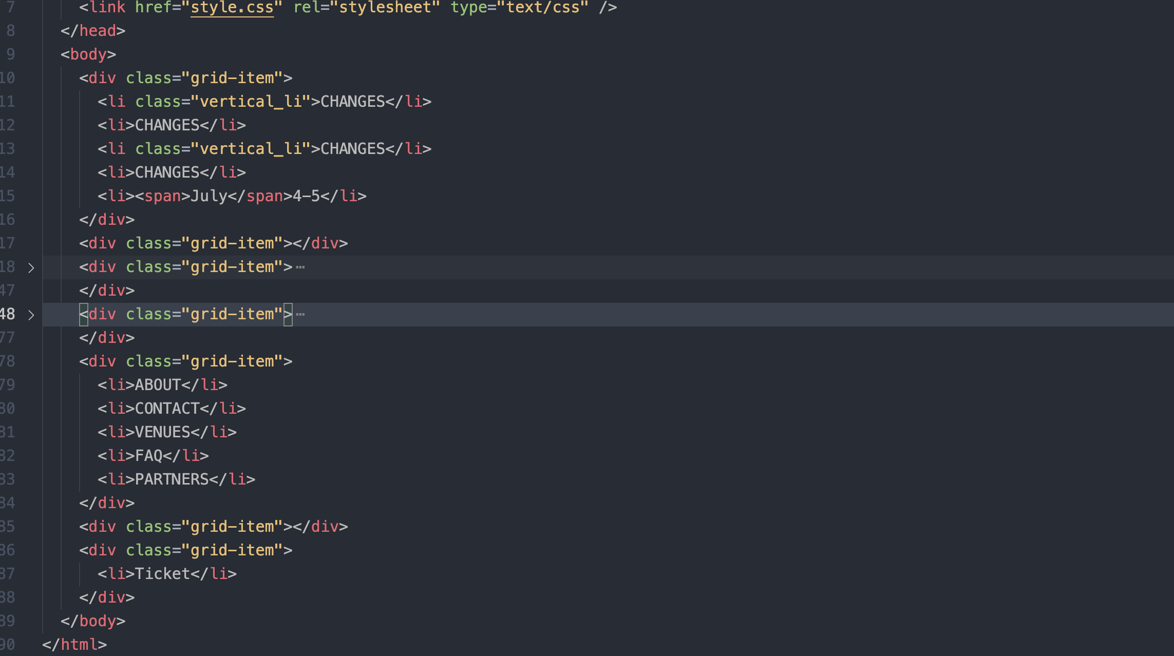 특별히 많이 활용한건 grid-column과 grid-row를 많이 활용했다. 코드를 보자~