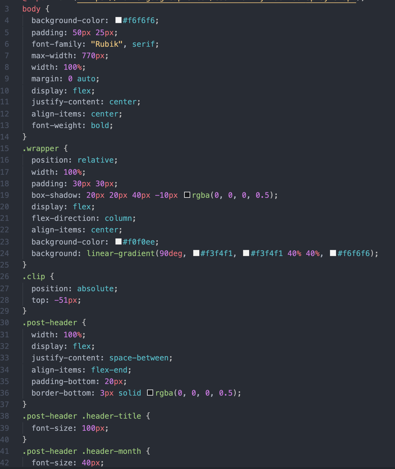 wrapper에서 특이점은.... 아무래도 백그라운드 gradient를 준 부분인데 포스터의 색상이 빛바램이 있어서 이를 표현하기 위해 넣어줬다