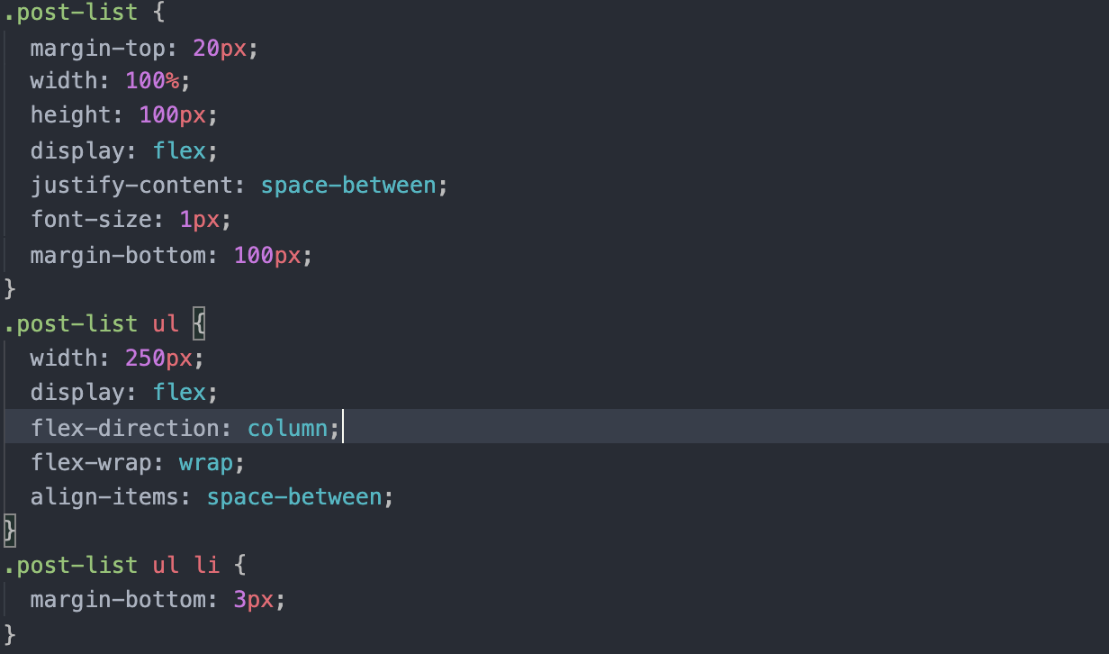 그리고 ul도 flexbox로 만들고서 li들을 vertical로 정렬하기 위해 디렉션을 column으로 해줬다