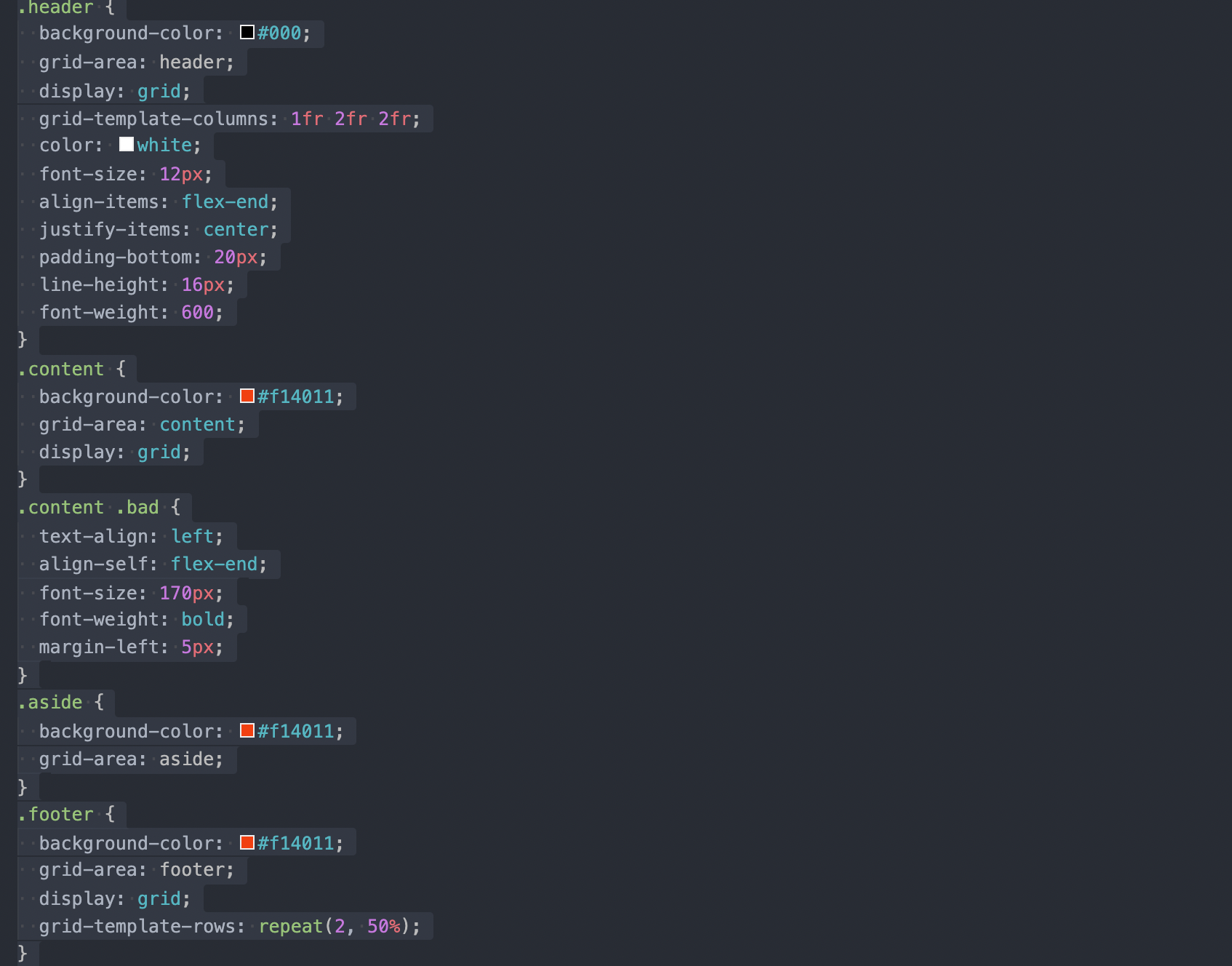 그리고 각 박스당 grid area를 지정해주고 부모 박스에서 grid-template-areas로 위치를 지정해주었다.