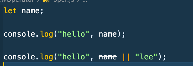 ||를 써서 name이 false이면 lee를 출력하도록 해주면 default로 사용해서 출력해 줄 수 있다.