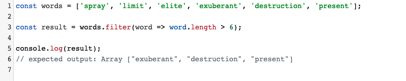 filter역시 매개변수로 콜백함수를 받고 주어진 콜백함수에 만족하는(true를 반환하는) 요소를 새로운 배열로 만들어 준다.