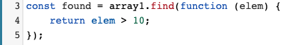 이 함수는 주어진 함수를 만족하는 첫 번째 요소의 값을 반환한다. 없다면 undefined를 반환.