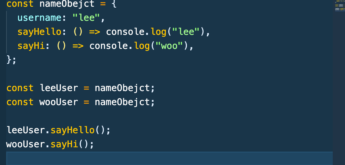 leeUser라는 object와 wooUser라는 object로도 class와 같이 실행이 가능하다.