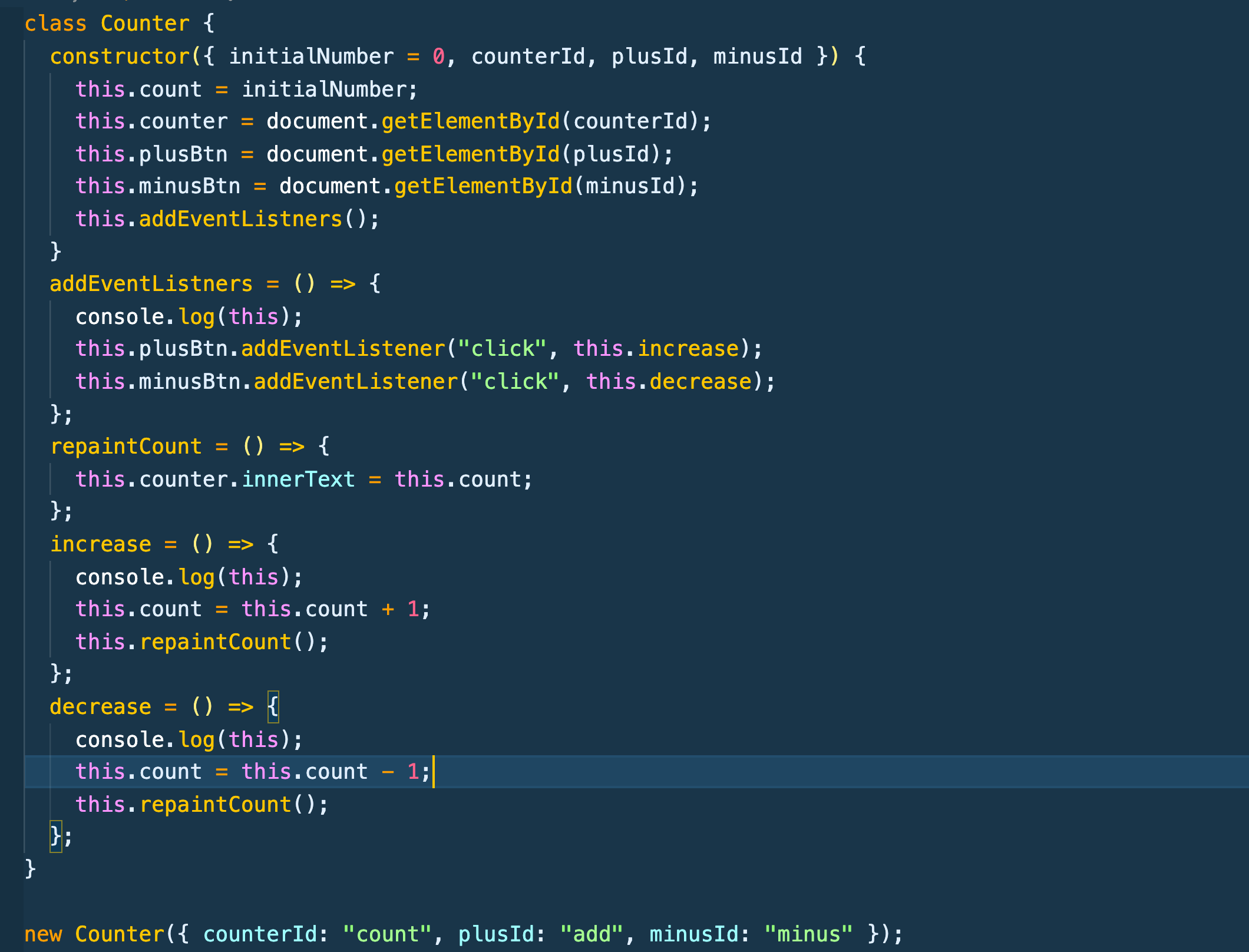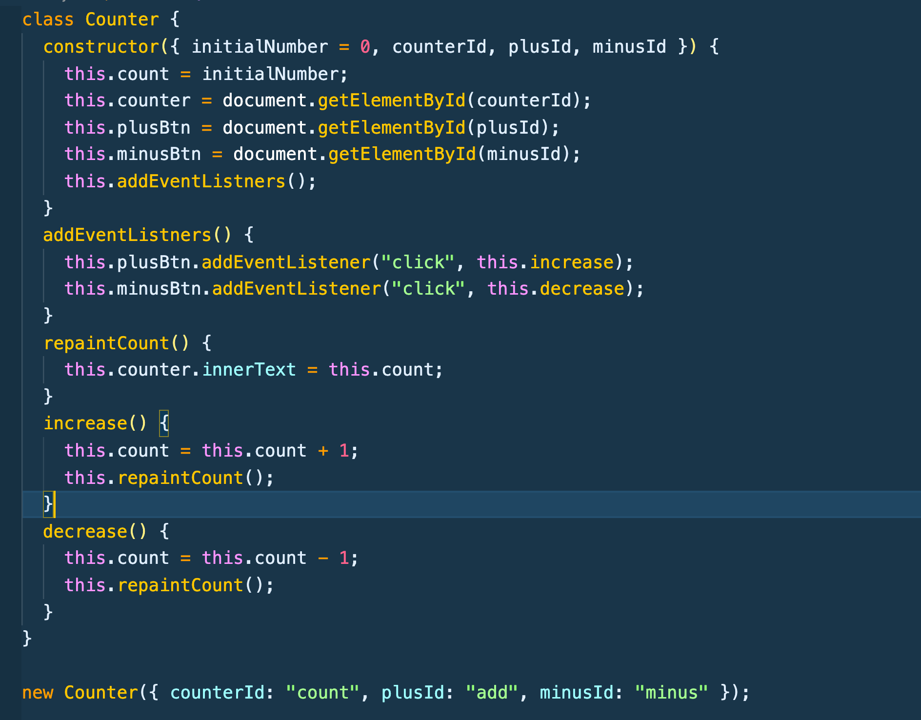 Counter라는 클래스를 만들어주고 constructor는 default값 0을 갖는 count 프로퍼티와