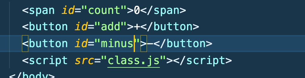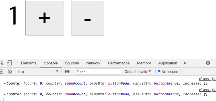 자 그럼 이 class를 이용해서 html에 plus minus버튼을 만들어 숫자의 증감을 나타내보자.