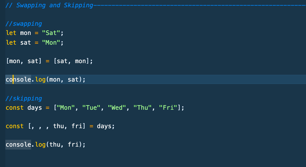 두개의 변수에 값이 잘못 할다 되어있다면 저렇게 해주면 다시 할당이 가능하다