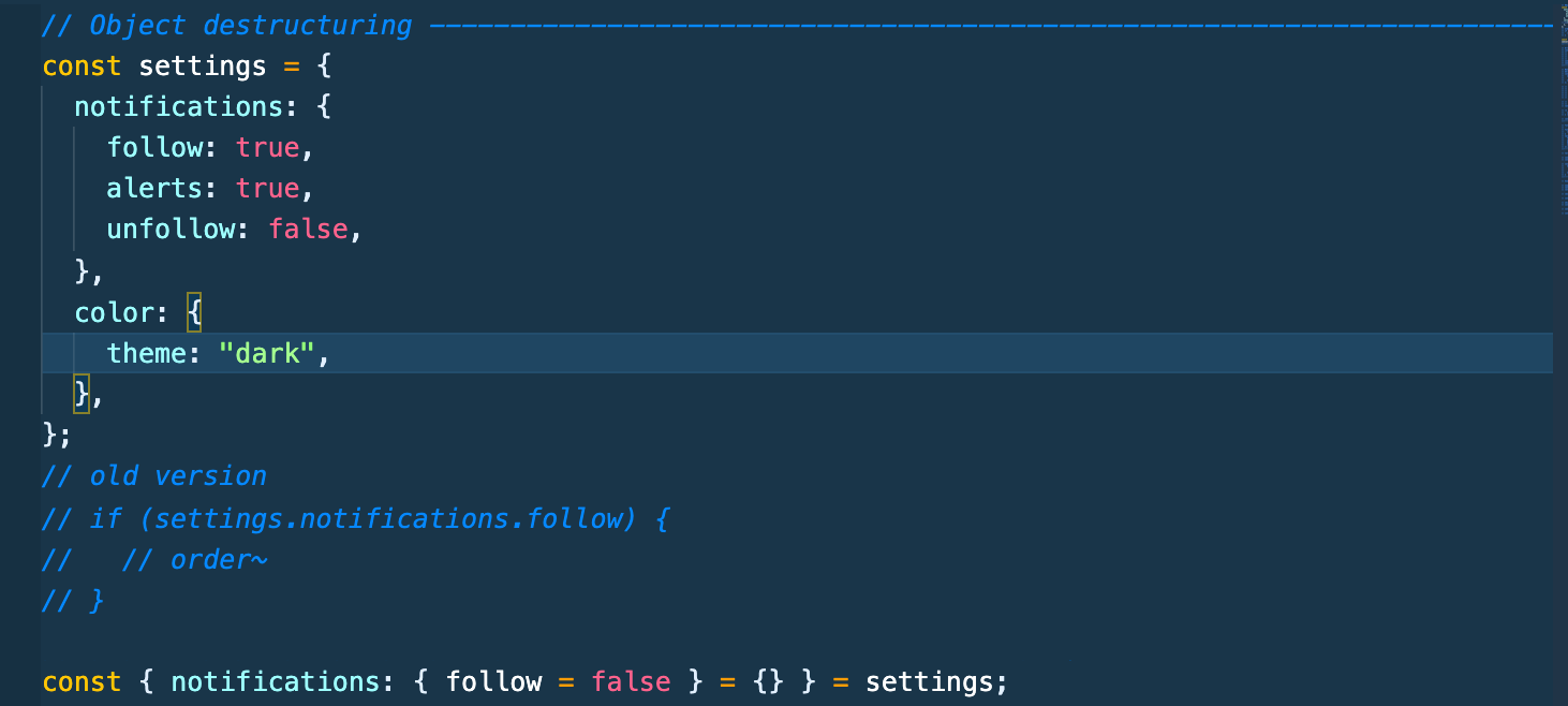 그러나 destructuring을 이용하면 value를 추출해 변수에 할당하면 된다.