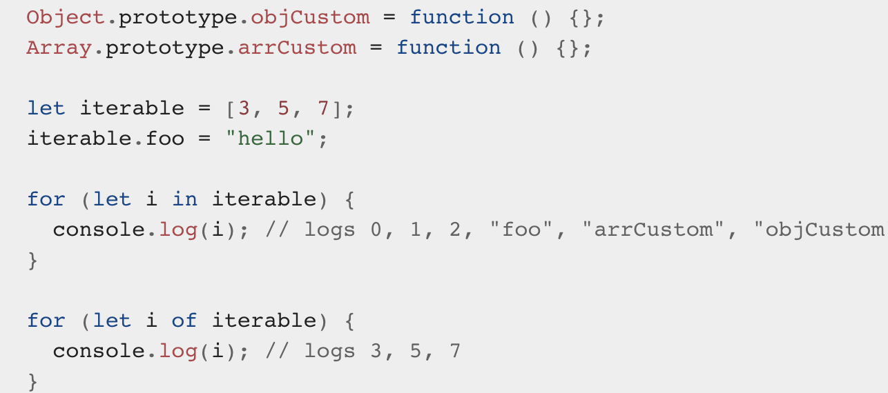for ...in의 경우 추가된 object와 열거가능한 모든 속성에대해서 반복을 했지만