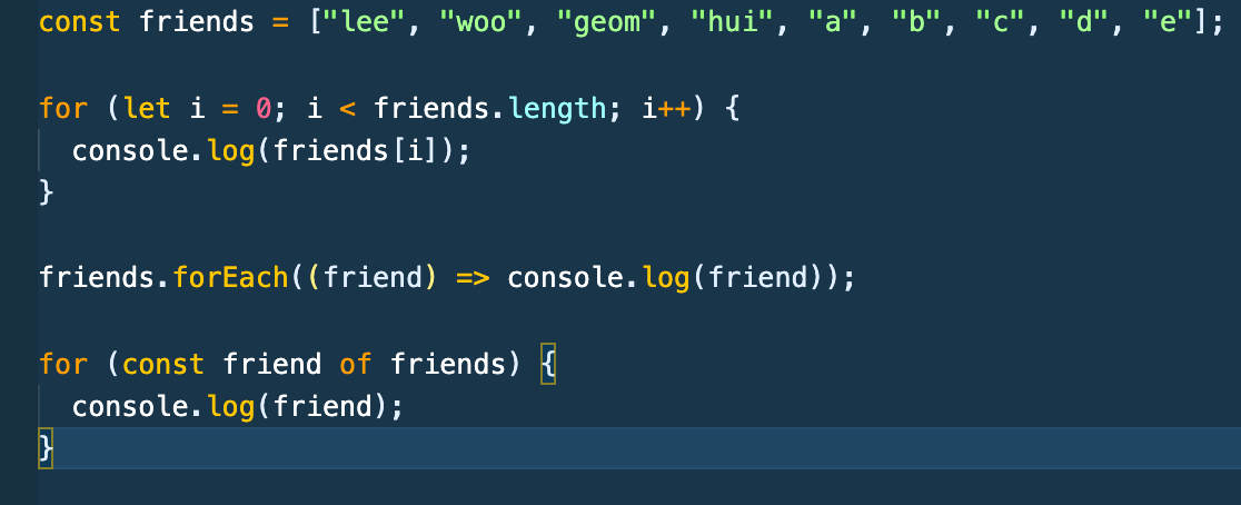 forEach도 간단하고 좋지만 for...of구문도 짧고 좋다.