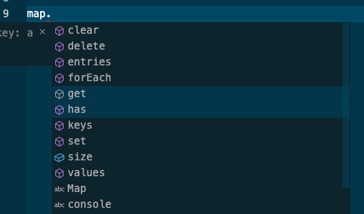 has()를 통해 해당 키가 있는지 확인 가능하고, get()으로 해당 키의 벨류를 얻을 수 있다.