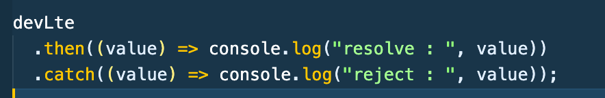 먼저 console.log가 devLte를 출력하는데 대기상태인 Promise임을 나타내고 3초간 대기임을 띄우다가