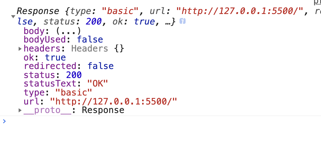 다른 Promise를 console.log한것이다. response가 josn()이라는 promise를 리턴하는 함수를 가지고 있기 때문이다.