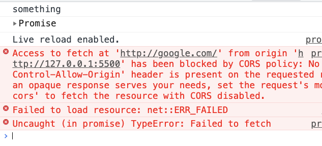 기본적으로 google은 fetch가 허용되지 않으니 reject될것이다.