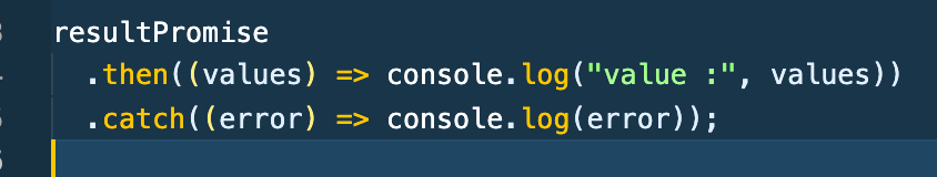 해당 promise가 성공적으로 resolve되면 resolve: value값을 띄워주고