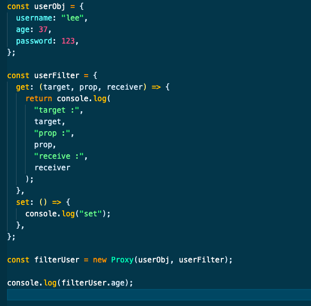 프록시 객체는 두개의 인자를 갖는다. filter하고싶은 target과 handler가 필요하다.