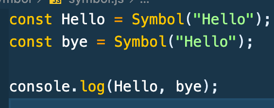 symbol()로부터 반환되는 모든 심볼 값은 고유하다. 심볼 값은 객체 프로퍼티에 대한 식별자로 사용될 수 있다. 이것이 심볼 데이터 형식의 유일한 목적이다.