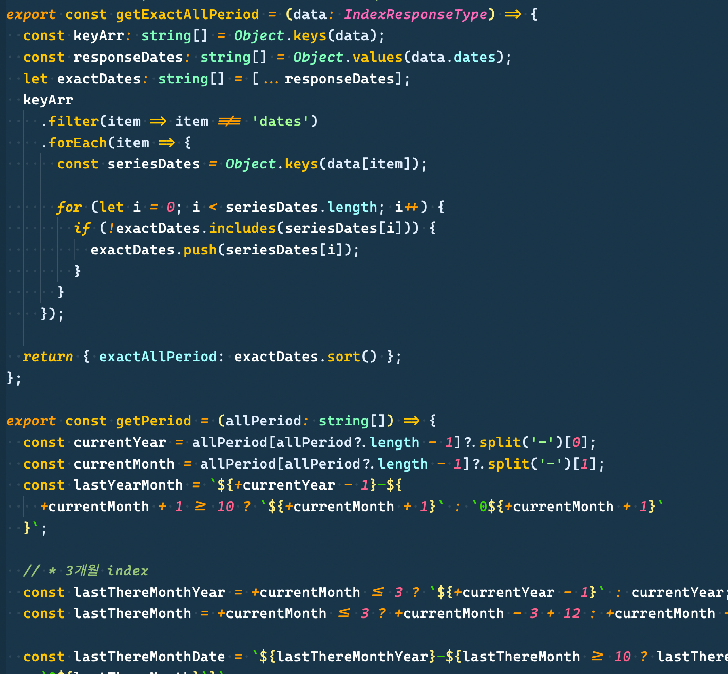 이렇게!! 뭐 문제는 한 apexchart에 뿌려줘야 하고 내가 만들어놓은 시계열 차트 공통 컴포넌트를 사용해야 하며 정제하는 함수들도 기존껏을 사용해야 하면 하나의 데이터로 머징을 해야한다.