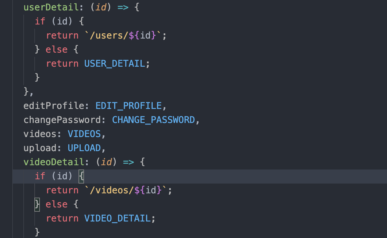 첫번째 리턴값을 갖는다. 여기서 이미 /videos/${id}를 설정해 주었기 때문에 /videos를 먼저 라우트 되고 id값을 인자로 받아 페이지 연결이 된다.