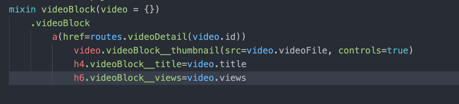 mixins로 이동해서 videoBlock mixin에 링크를 걸어준다.