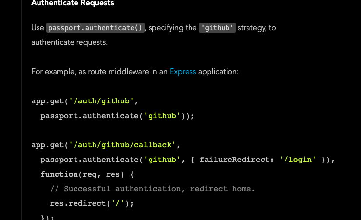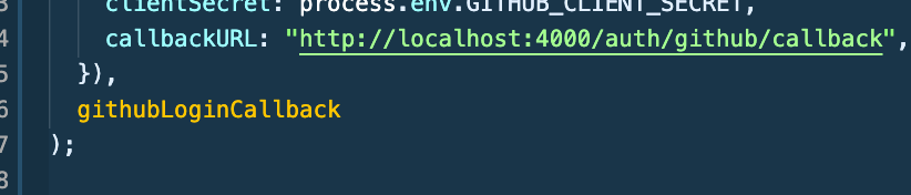 돌아와서 callbackURL에 접근하게 되면 passport.authenticate("github", {failureRedirect: routes.login})을 사용한다.