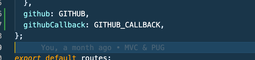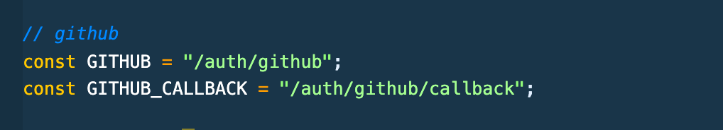 routes.js로 가서 깃헙의 url라우트를 만들어 주자