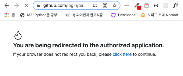 그곳에 도달하면 깃헙은 이 앱에 사용자의 정보를 괜찮은지 물어보고 사용자가 승인하면 깃헙은 사용자를 다시 나의
