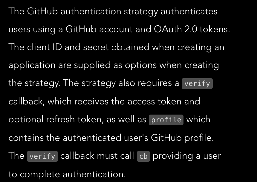 인증된 사용자의 github 프로필이 들어있는 프로필이 필요하다. callback은 인증을 완료하기 위해 사용자가 제공하는 cb를 호출해야 한다.