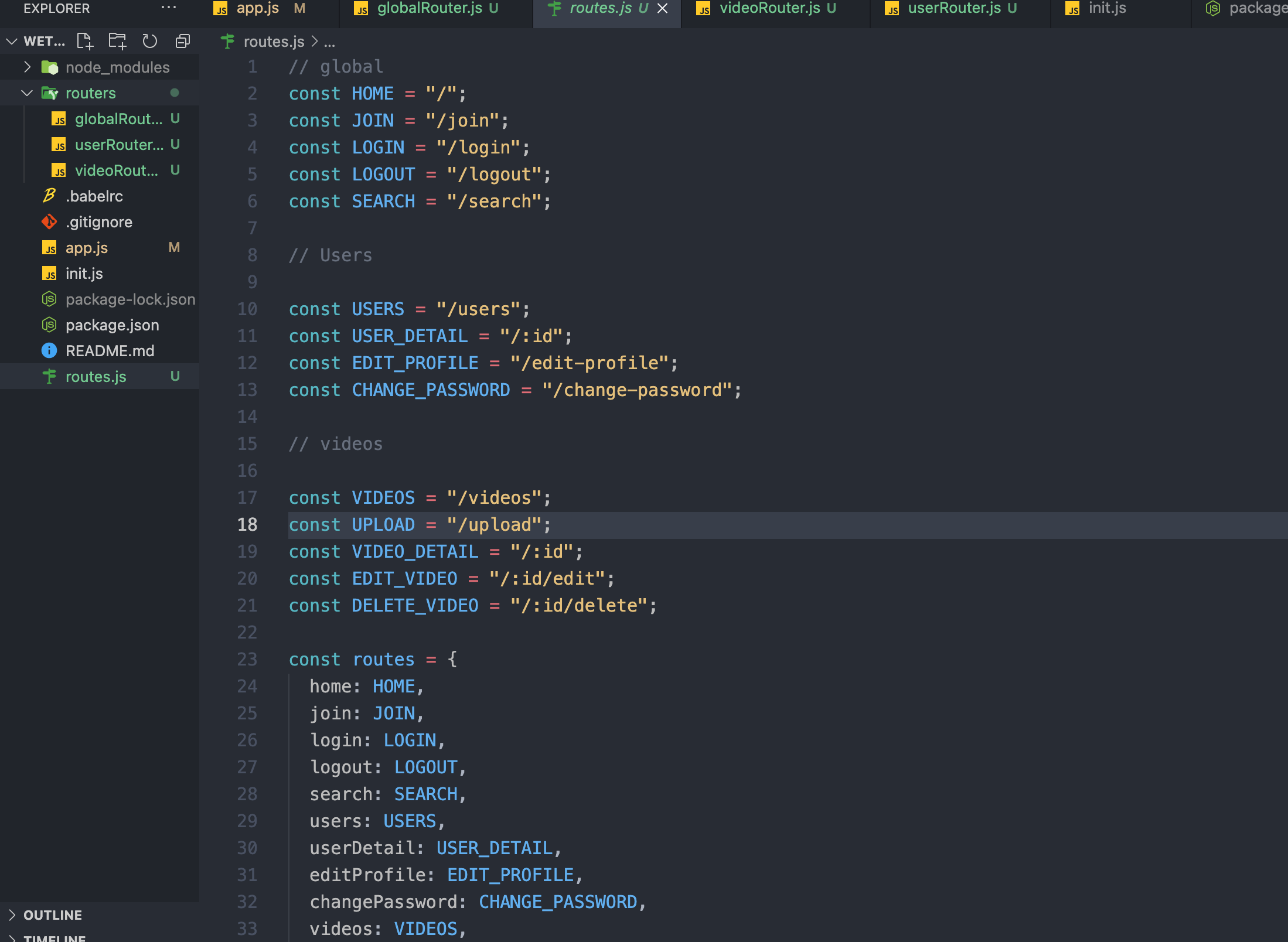 유튜브 클론과정이니 userRouter와 videoRouter를 만들고 넣어준다.