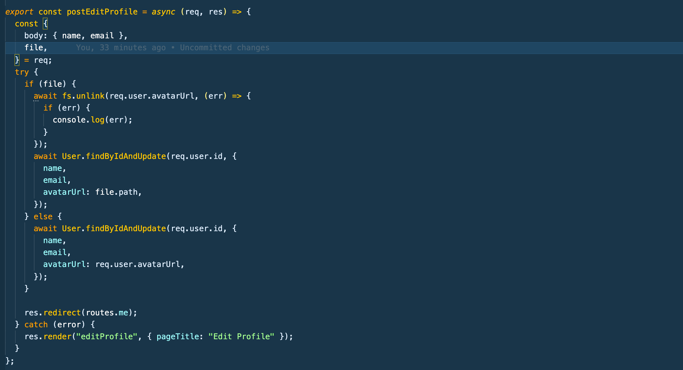 그리고 postEditProfile 컨트롤러를 만들어주자