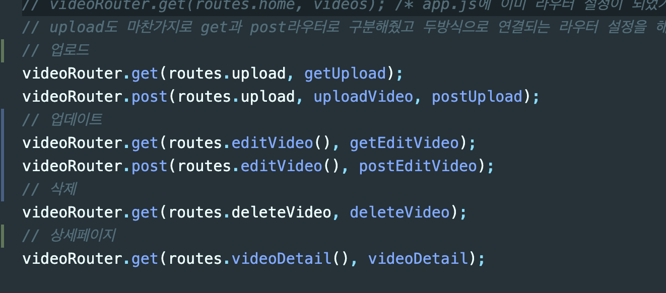 컨트롤러는 만들었고 editVideo 컨트롤러가 두개로 바꼈으니