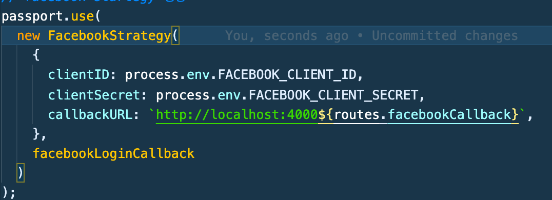 이제 passport-facebook 설치를 해주고 .env 환경변수 설정해서 앱아이디와 시크릿 아이디 넣어주고