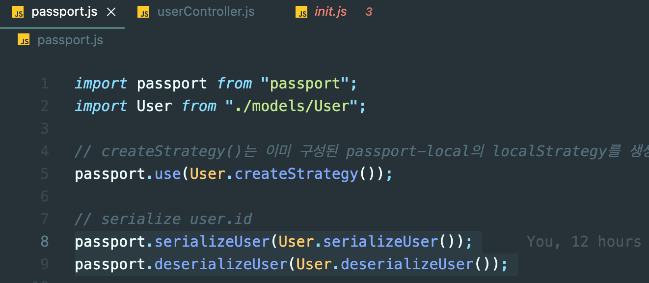 설치가 끝났으면 passport.js에 import해주고 모델도 함께 import 해준다.