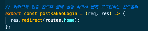 카카오 로그인 요청시 카카오페이지로 넘겨줄 컨트롤러 하나를 만들어주고