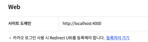 애플리케이션을 만들었으면 내가 등록할 싸이트 도메인을 적어주고