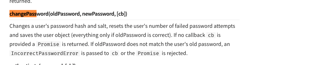 자 passport-local-mongoose사이트에서 changePassowrd를 치면 나오는 instance methods이다.