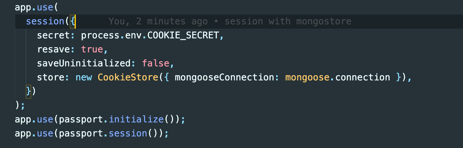 그리고 passport를 통해 session을 이용하는데, 즉 session이 가진 쿠키를 이용한다.