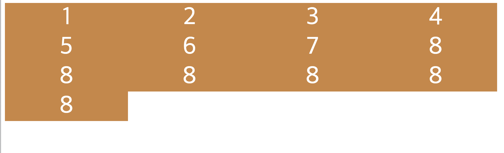 여전히 250px의 칼럼 4개를 가진 그리드로 아래로 계속해서 일정하게 쌓아가고 있다.