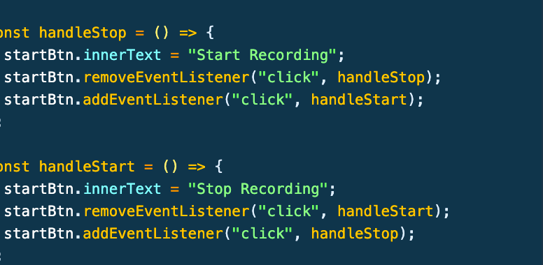 start하기전 핸들러로 이벤트를 받아주고 녹화시작하고 끝나는 시점에서 stop을 실행해준다.