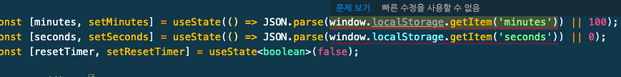 시간 state를 로컬스토리지에서 사용하려고 window.localStorage를 사용하려고 했는데