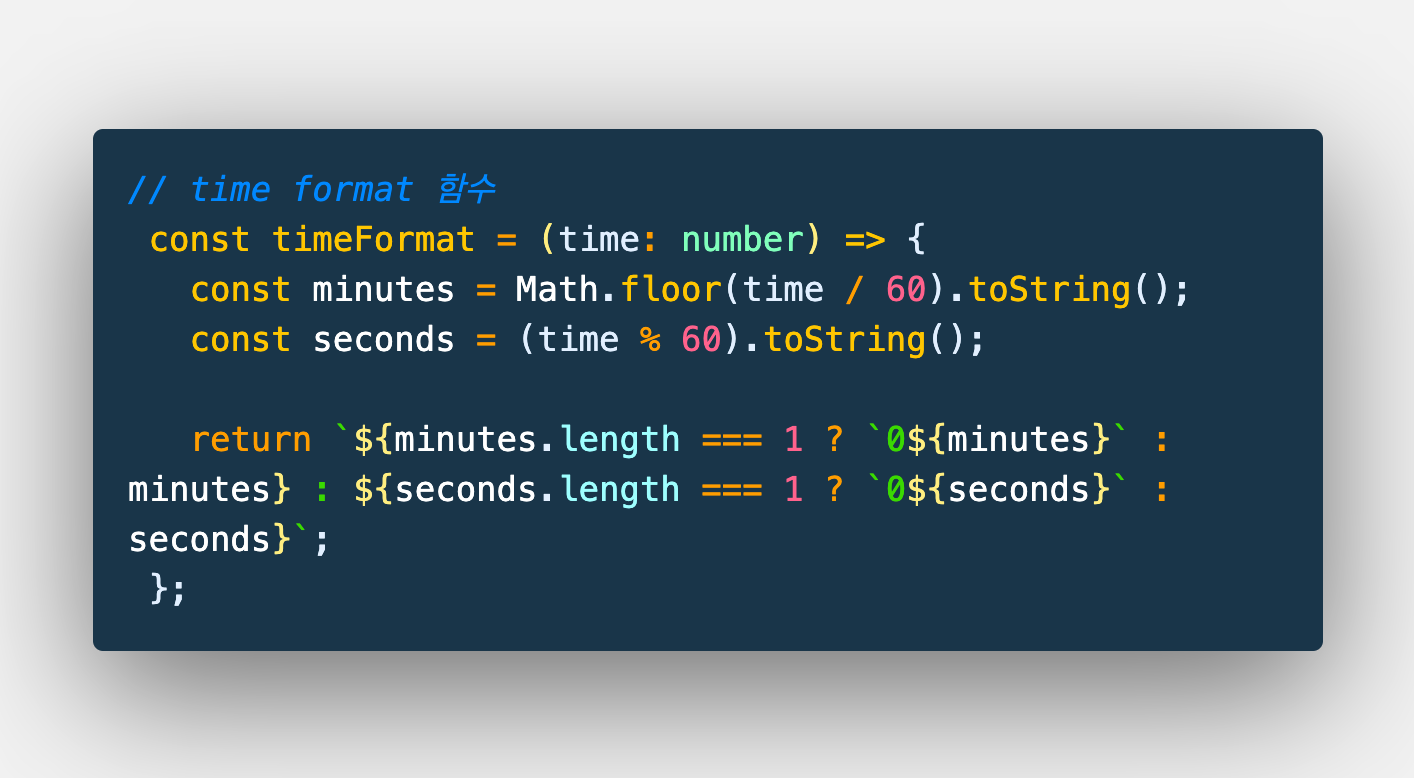 역시 미리 만들어 둔 timer state에 담아준다. 만약 gap이 1보다 작다면 timer를 0으로 셋팅해주고