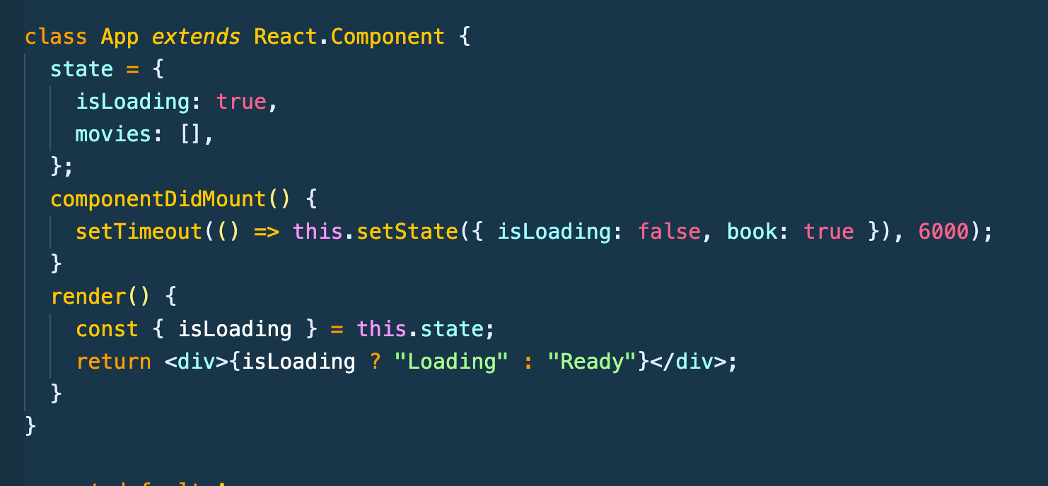 setTimeout함수로 5초뒤 setState를 이용해 isLoading을 false로 바꿔준다.