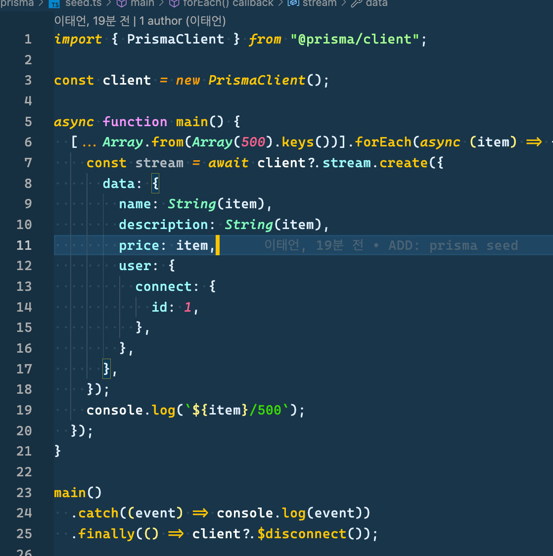 nextjs에서 seed.ts파일을 하나 생성 후 해당 코드를 작성해 주어서 seed를 생성해주었다.
