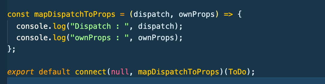 ownProps는 todo 컴포넌트가 받고 있는 props가 나왔다. text는 가지고 쓰고있었고~ 이제 이 id를 어떻게 가져다가 dispatch하느냐 인데.