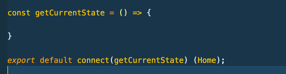 자 그럼 state를 가져오는 것을 해보자. state를 가져오는 함수하나를 만들어주고 connect에 넣어준다