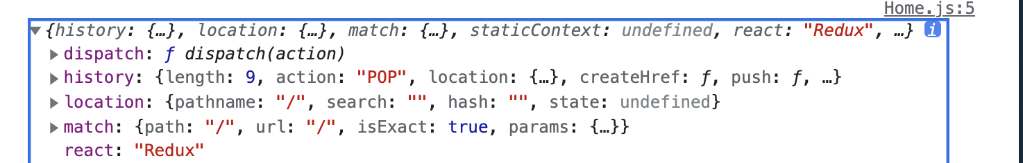 현재 state는 빈배열인게 맞고 두번째 ownProps는 react router에서 Home 컴포넌트에 준 props이다.