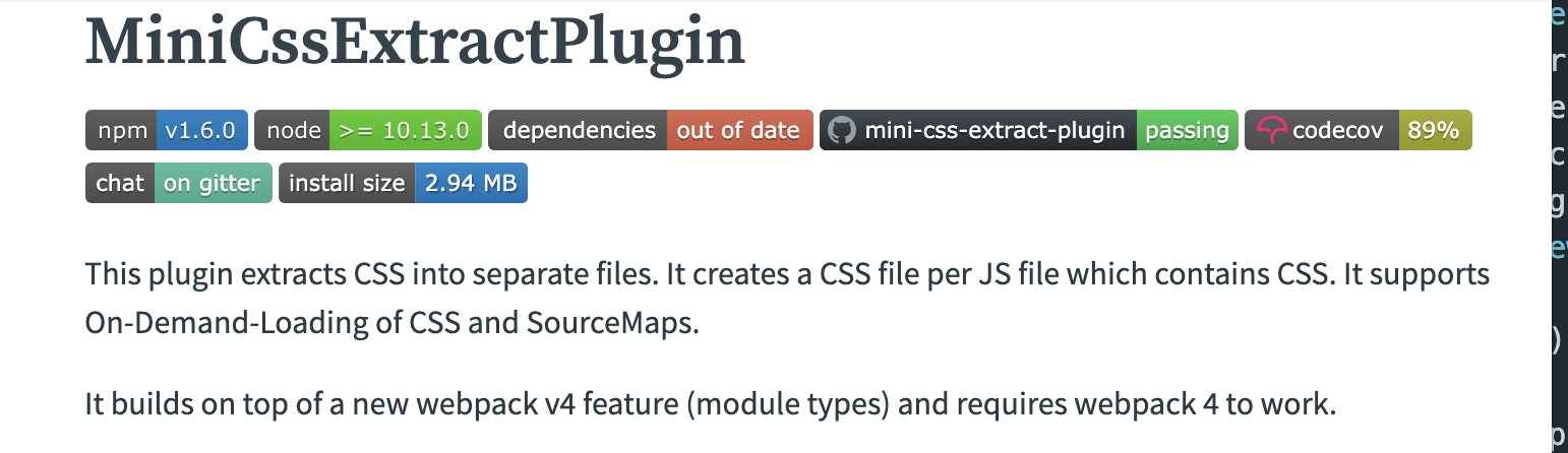 webpack홈페이지 내용이다. 이 플러그인은 CSS파일을 분리해서 추출한다고 한다. 굿굿